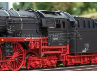 Modell: Mit Digital-Decoder und umfangreichen Geräuschfunktionen. Geregelter Hochleistungsantrieb mit Schwungmasse im Kessel. Eine Achsen angetrieben, drei Achsen über Kuppelstange angetrieben. Haftreifen. Lokomotive und Tender weitgehend aus Metall. Serienmäßig eingebauter Rauchgenerator mit geschwindigkeitsabhängigem, dynamischem Rauchausstoß. Fahrtrichtungsabhängig wechselndes Zweilicht-Spitzensignal konventionell in Betrieb, digital schaltbar. Führerstandbeleuchtung, Feuerbüchsenflackern und Fahrwerkbeleuchtung separat digital schaltbar. Beleuchtung mit wartungsfreien warmweißen und roten Leuchtdioden (LED). Mit Pufferspeicher. Kurzkupplung mit Kinematik zwischen Lok und Tender. Am Tender kinematikgeführte Kurzkupplung mit NEM-Schacht. Pufferhöhe an Lok und Tender nach NEM. Befahrbarer Mindestradius 437,5 mm. Mit leichten Einschränkungen in Radius 1 fahrfähig. Kolbenstangenschutzrohre und Bremsschläuche liegen bei. Länge über Puffer ca. 31 cm.