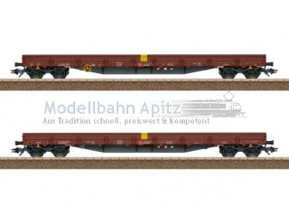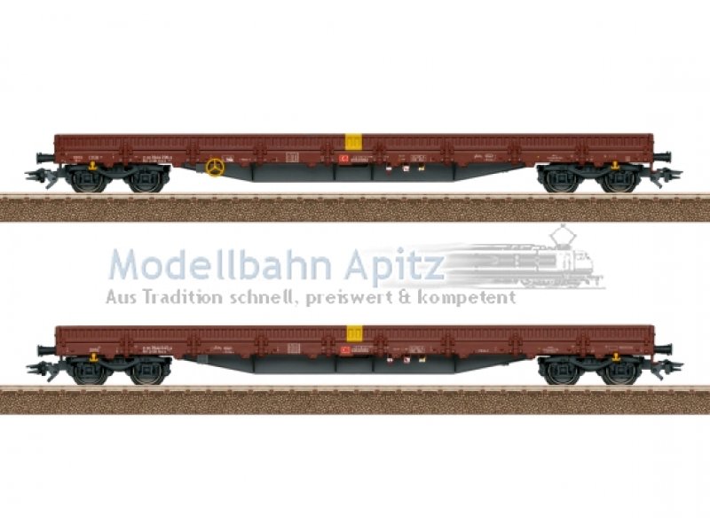 Vorbild: Set bestehend aus zwei vierachsigen Niederbordwagen Bauart Res-x der Deutschen Bahn AG (DB AG). Europäische Standardbauart mit 19,90 m Länge. Rotbraune Grundfarbgebung. Betriebszustand ab 2018. Modell: Spezifische Ausführung des Unterbodens. Drehgestelle Bauart Y25. Viele angesetzte Einzelheiten. Beide Wagen mit einer Schienennachbildung beladen. Wagen einzeln verpackt in zusätzlicher Umverpackung. Länge über Puffer ca. 46 cm.Wechselstromradsatz E700150.