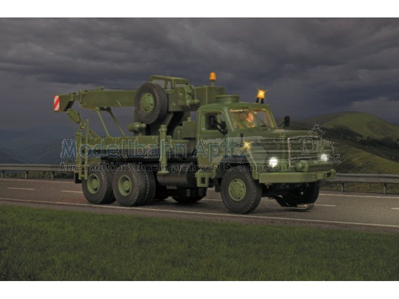 H0 MAGIRUS DEUTZ 3-achs Bergekran mitRundumleuchte, Militär, Basis, Funktionsmodell