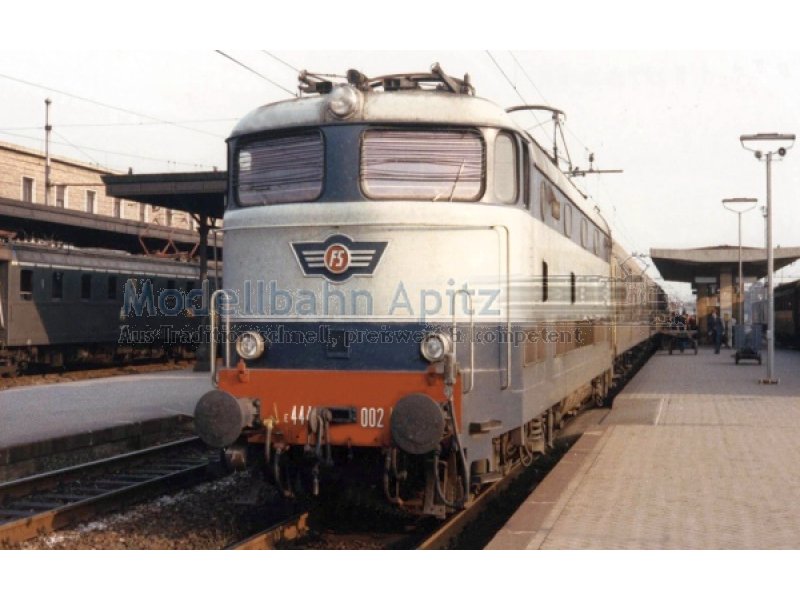 FS, Elektrolokomotive E.444 002 Prototyp, in Ursprungslackierung, silberne Zierleisten, schwarze Drehgestelle |