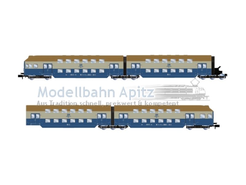 DR, 4-tlg. Doppelstockeinheit DBv mit Führerstand, blau-graue Farbgebung |