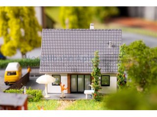Dieses charmante Doppelpack bringt gleich zwei Einfamilienhäuser auf Ihre Modellbahnanlage: Das erste überzeugt mit hölzernen Wandakzenten, Terrasse und grau geziegeltem Dach. Das zweite Haus setzt mit grauweißer Fassade, eleganter überdachter Terrasse und rotem Ziegeldach weitere moderne Akzente. Beide Modelle sind leicht zu bauen und ideal für Einsteiger geeignet – doppelter Spaß im Miniaturformat!
