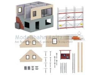 Der Grundstein ist gelegt, das Kellergeschoss steht – und im Erdgeschoss wachsen bereits die ersten Zwischenwände empor. Dieses Modell eines Einfamilienhauses im Bau bringt echtes Baustellenflair auf Ihre Anlage. Mit typischem Zubehör wie Leitern, Baumaterial und Werkzeugen wird die Szene lebendig!
