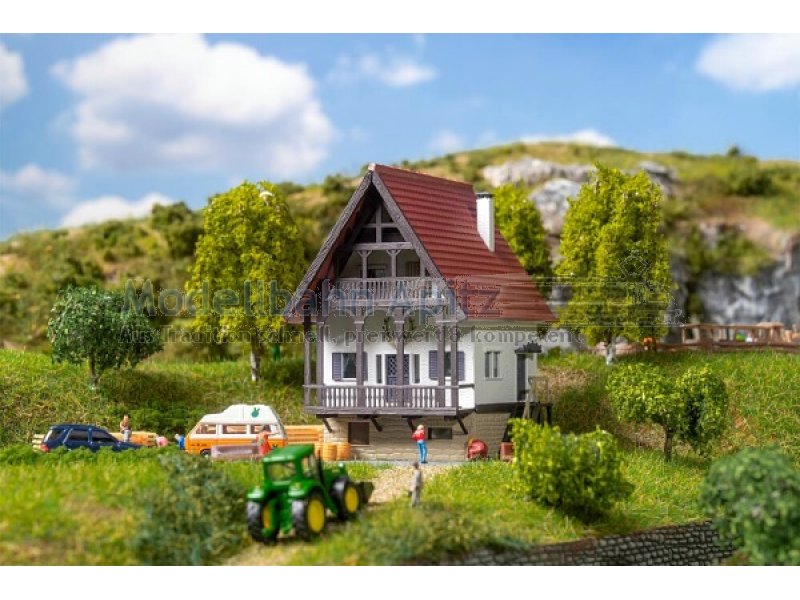 Ländliche Idylle fürs Modell! Dieses charmante weiße Forsthaus im traditionellen Baustil bringt rustikales Flair in Ihre Modelllandschaft. Liebevoll gestaltete Fachwerk-Elemente, ein rot gedecktes Satteldach und die vorgelagerte Holzbalkon-Konstruktion verleihen dem Gebäude eine warme, einladende Ausstrahlung – perfekt für Waldrand, Lichtung oder kleines Dorfensemble.