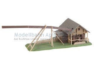 mit originalgetreuem Wasserkanal fuer den oberschlaechtigen Antrieb des Wasserrades. |