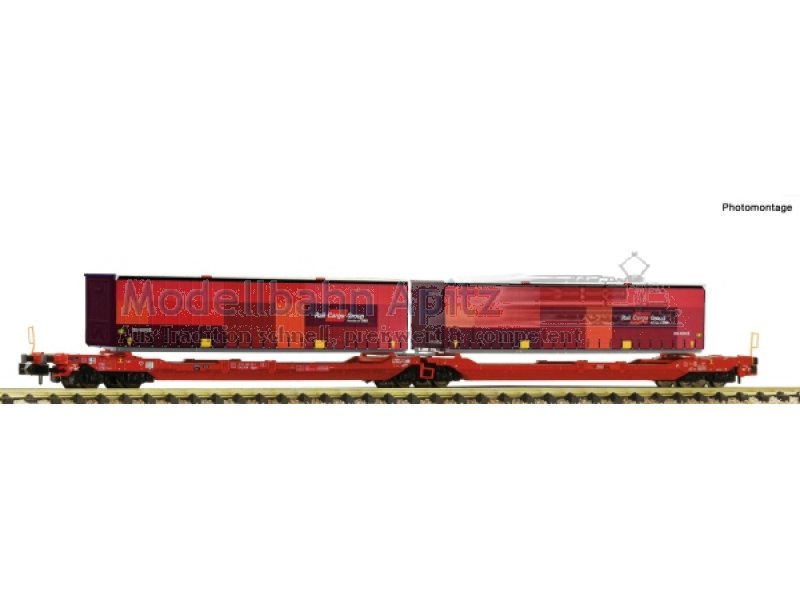 Beladen mit zwei 40-Fuß-Wechselbrücken im neuen Rail Cargo Group Design, Wagen aus Metalldruckguss