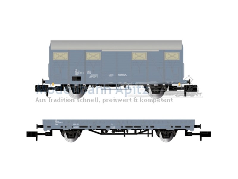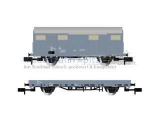 FS, 2-tlg. Set Dienstwagen, VGhs-Kastenwagen + Vkkkm-Flachwagen mit Schotterbeladung |