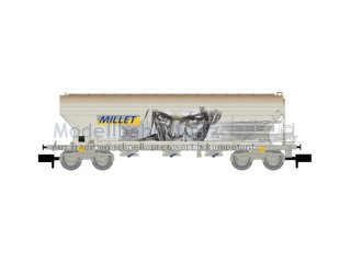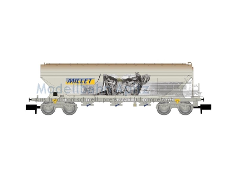 F-MISA, 4-achs. Getreidesilowagen mit geraden Seitenwänden, äMILLET“ mit Graffiti |