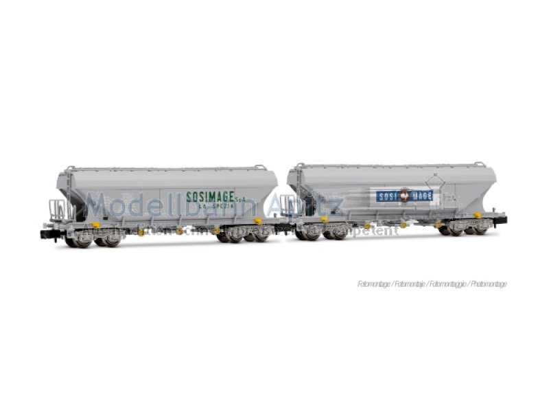 FS, 2-tlg. Set 4-achs. Getreidesilowagen mit geraden Seitenwänden äSosimage“, graue Farbgebung |