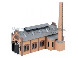 Vielseitig einsetzbar als Lokschuppen, Werkstatt oder Schlosserei – mit Durchfahrtstoren vorne und hinten. Die Modulbauweise lässt eine variable Gebäudeverlängerung und den Bau mehrerer Modelle nebeneinander zu. Kamin vorbereitet für Rauchgeneratoren, für besonders realistische Miniaturszenen.