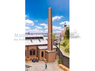 Vielseitig einsetzbar als Lokschuppen, Werkstatt oder Schlosserei – mit Durchfahrtstoren vorne und hinten. Die Modulbauweise lässt eine variable Gebäudeverlängerung und den Bau mehrerer Modelle nebeneinander zu. Kamin vorbereitet für Rauchgeneratoren, für besonders realistische Miniaturszenen.