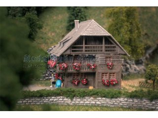 Ein charmantes, dunkles Schwarzwaldhaus, wie man es in den Höhenlagen des Schwarzwaldes findet. Dank seiner dezenten Größe fügt sich das Haus perfekt in Wiesen- und Waldlandschaften ein und eignet sich ideal für den Anlagenhintergrund. Inklusive Figur – ein kleines Stück Schwarzwälder Tradition für jede Modellwelt.