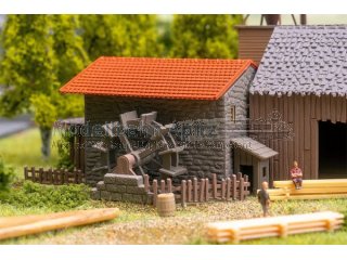 Dieses liebevoll gestaltete Sägewerk besticht durch zahlreiche feine Details und ein authentisches rustikales Erscheinungsbild. Das Wasserrad kann durch den Einbau des Motors (Art. 180629) angetrieben werden, wobei der Einbau nur während der Montage des Bausatzes möglich ist. Bitte beachten: Der Motor ist nicht im Lieferumfang enthalten.
