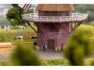 Leise drehen sich die weiß-roten Flügel dieser liebevoll gestalteten Windmühle mit Strohdach und Backsteinsockel – ein charmanter Blickfang für jede Modelllandschaft. Bei diesem Modell können die Flügel durch Einbau des Motors (Art. 180722, max. 5 V, Gleichspannung) realistisch bewegt werden. Der Einbau des Motors kann nur gleichzeitig mit der Bausatzmontage erfolgen. Motor liegt nicht bei.