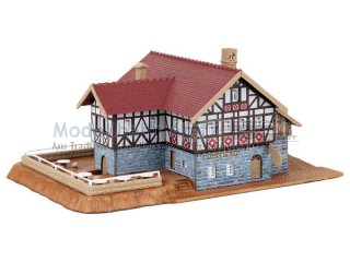 Dieses charmante Gasthaus mit Steinfundament und Fachwerk lädt mit seinem großzügigen Außenbereich die Miniaturbesucher zum Verweilen ein. Es versprüht urigen, bäuerlichen Charme und bereichert jede Dorfanlage um ein liebevoll gestaltetes Detail.