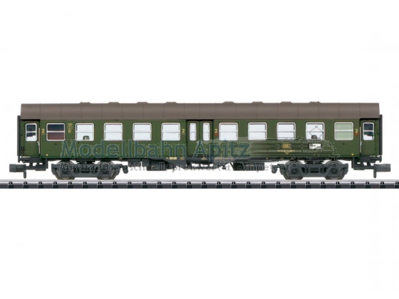 Vorbild: vierachsiger Umbauwagen 2. Klasse Byg 514 der Deutschen Bundesbahn (DB). Ausführung um 1976 in chromoxidgrüner Farbgebung.Einsatz: Nahverkehrs- und Eilzüge. Modell: Wagen mit Kinematik für Kurzkupplung und mit Drehgestellen amerikanischer Bauart (Schwanenhalsdrehgestelle). Vorbereitet für den nachträglichen Einbau einer Innenbeleuchtung. Länge über Puffer 122 mm.Die dazu passende Innenbeleuchtung: 66638 LED-Innenbeleuchtung.