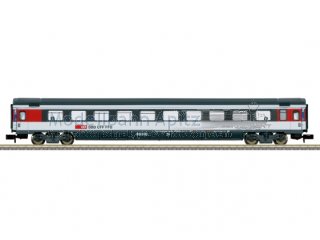 Vorbild: Schnellzugwagen Typ Bpm der Schweizerischen Bundesbahnen (SBB/CFF/FFS). Großraumwagen 2. Klasse.Aktueller Einsatz: Internationale Fernzüge. Modell: Kinematik für Kurzkupplung. Vorbereitet für den nachträglichen Einbau einer Innenbeleuchtung. Passender Ergänzungswagen zur Startpackung 11167. Länge über Puffer 165 mm.