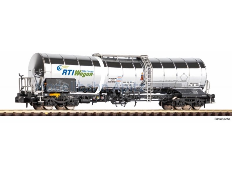 Neuheit 2026:Chemiekesselwagen in Chromoptik mit RTI-Schriftzug für N Modelleisenbahn Epoche VIDer vierachsige Chemiekesselwagen im Maßstab 1:160 besticht durch freistehend montierte Leitern, Griffstangen und den verhchromten Hochglanzkessel im RTI-Design.Glänzender Chemiekesselwagen in Chromoptik | Geeignet für Spurgröße N | Freistehend montierte Leitern und Griffstangen | Konturenscharfe Bedruckung