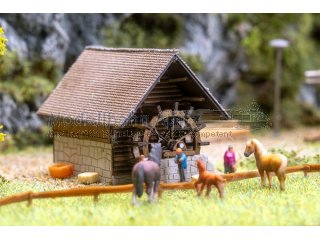 Rustikal und aus Holz gefertigt, vermittelt das Modell eines Sägewerks mit Wassermühle die typische Atmosphäre eines alten Handwerksbetriebs. Zahlreiche detailreiche Gerätschaften und Werkzeuge sorgen für authentischen Charme, während das Modell als liebevolles Detail ein Stück landschaftliches Idyll auf jede Miniaturanlage bringt.