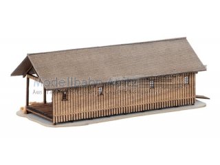 Rustikal und aus Holz gefertigt, vermittelt das Modell eines Sägewerks mit Wassermühle die typische Atmosphäre eines alten Handwerksbetriebs. Zahlreiche detailreiche Gerätschaften und Werkzeuge sorgen für authentischen Charme, während das Modell als liebevolles Detail ein Stück landschaftliches Idyll auf jede Miniaturanlage bringt.