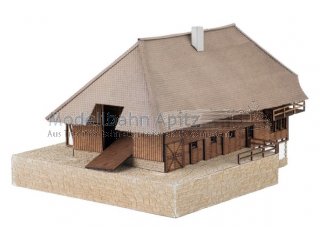Ein kleiner Schwarzwaldhof in warmer Holzoptik mit Fachwerkelementen und solidem Steinfundament lugt zwischen den dunklen Nadelbäumen hervor und verleiht der Landschaft ihren malerischen und unverwechselbaren Charme. Das tief herabgesenkte Eindach und die umlaufenden Balkone an zwei Seiten machen ihn zu einem Wahrzeichen des Schwarzwalds.