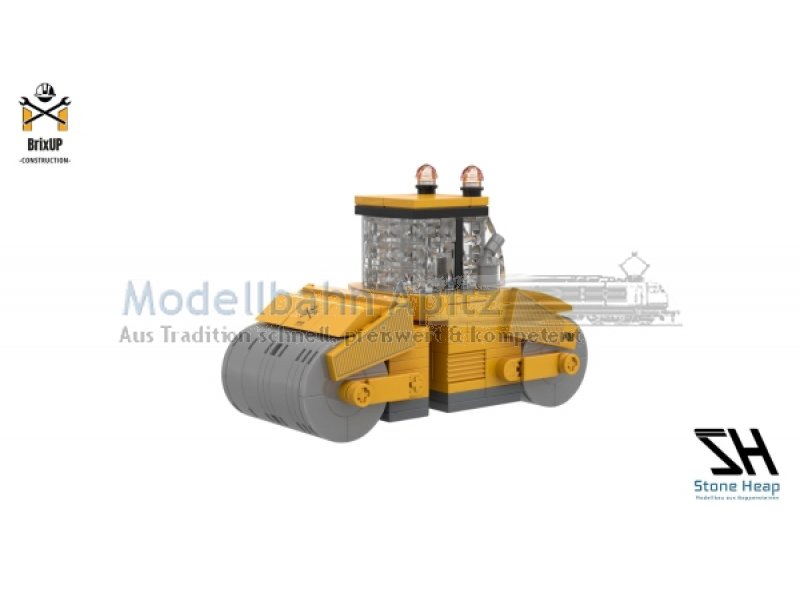 Die Walze als Klemmbaustein-Modell ist ein echtes Baustellen-Highlight. Mit rollenden Walzen vorne und hinten und drehbarem Walzenmechanismus sorgt sie für realistisches Straßenbaufeeling und ergänzt jede Baustellenlandschaft perfekt
